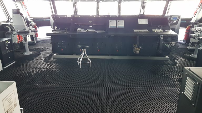 When the Adelaide was being constructed, the majority of the fitout work was completed in Spain. This also included the fatigue mats on the bridge, where the officers stand when on lookout or steering the ship.