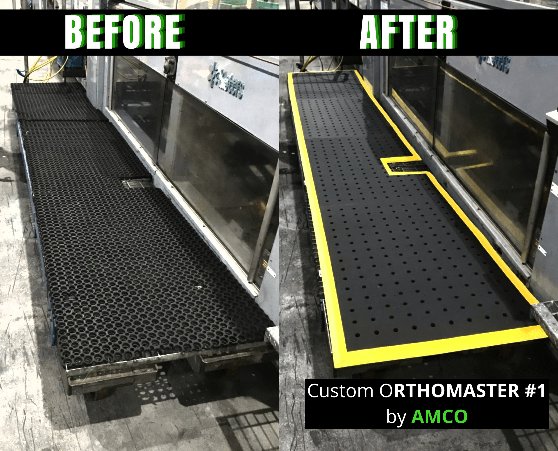 Best orthopedic mat bringing relief to those suffering from plantar fasciitis! The Orthomaster® is the anti-fatigue mat of choice for food grade and GMP areas. The anti-microbial agent blended throughout the secret Orthomaster® formula helps reduce the growth of bacteria and airborne pathogens. This also helps reduce cross contamination, and being a closed cell formulation it won’t absorb liquids. Creates immediate relief for staff with sore feet from plantar fasciitis.