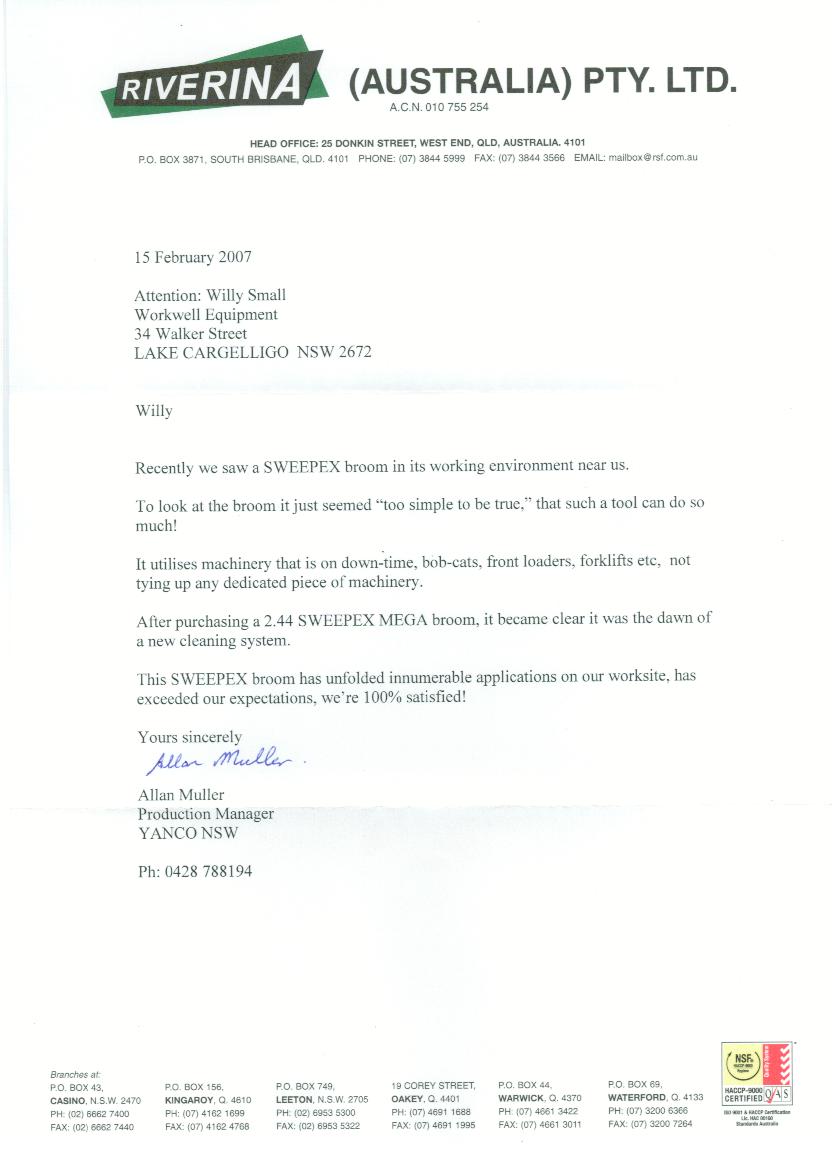 - Massive labour cost avoidance proof associated with Sweepex Mega Broom.