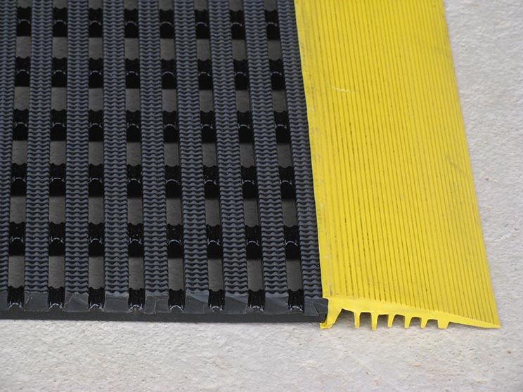 The final key and most important product spec was the anti-slip pattern. The typical criss-cross or square anti-slip pattern of previous mats caused the trolley wheels to shudder, which caused the cutting of the mat. The one-way run of anti-slip of the new PVC mat meant the trolley rolled across it smoothly with no bumps at all, and a solid PVC bevel at each end meant rolling it on and off was a breeze.
