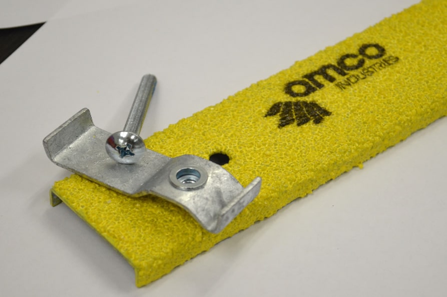 Our AMCO Gripmaster Australian anti slip stair nosing is ideal. Following the path set by this highly respected product, we introduce our C-Stud anti-slip conveyor walkway/incline channel. This innovative product makes installation easy. Imagine installing anti-slip channels on an incline or walkway located high up. One immediately has to consider using a scissor lift or other means of supporting an installer under the incline or walkway, right? Of course, we shouldn’t forget the other installer on the platform or walkway. Wow, two people, plus a scissor lift, we’re talking big bucks here.