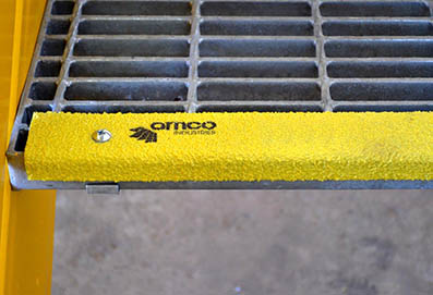 Manufactured with the inclusion of self-extinguishing fire retardant resins, the anti slip surface integrated with quartz silica granules will provide years of anti slip service. AMCO FRP Grating and Stair Treads are strong and long lasting anti-slip stair treads. FRP Grating has excellent resistance to a vast range of corrosive chemicals, which makes it an ideal product for use in environments where acids, salt and other rust/corrosion causing materials are prevalent.